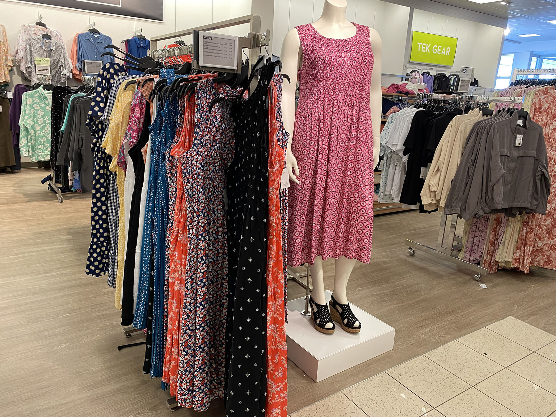 To be clear, all of the stuff on the left side of the photo is petites. The back of the right side? Athletic wear. Yep, in the year 2022, Kohl’s downsized the plus department to a fraction of its original size. Unlike when I was 17 and embarrassed about my size and my inability to find something pretty to wear, nearly-50-year-old me was furious.